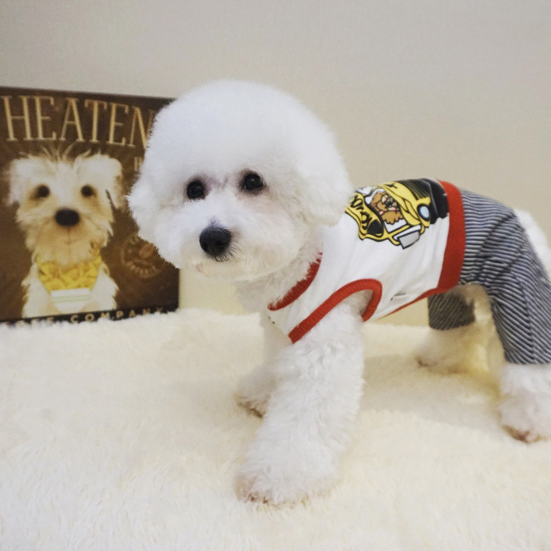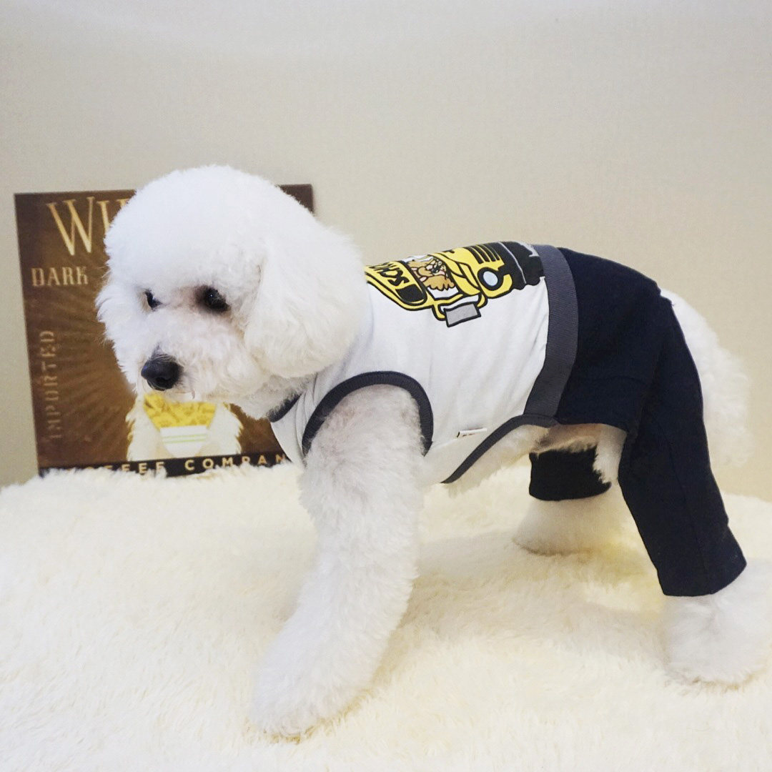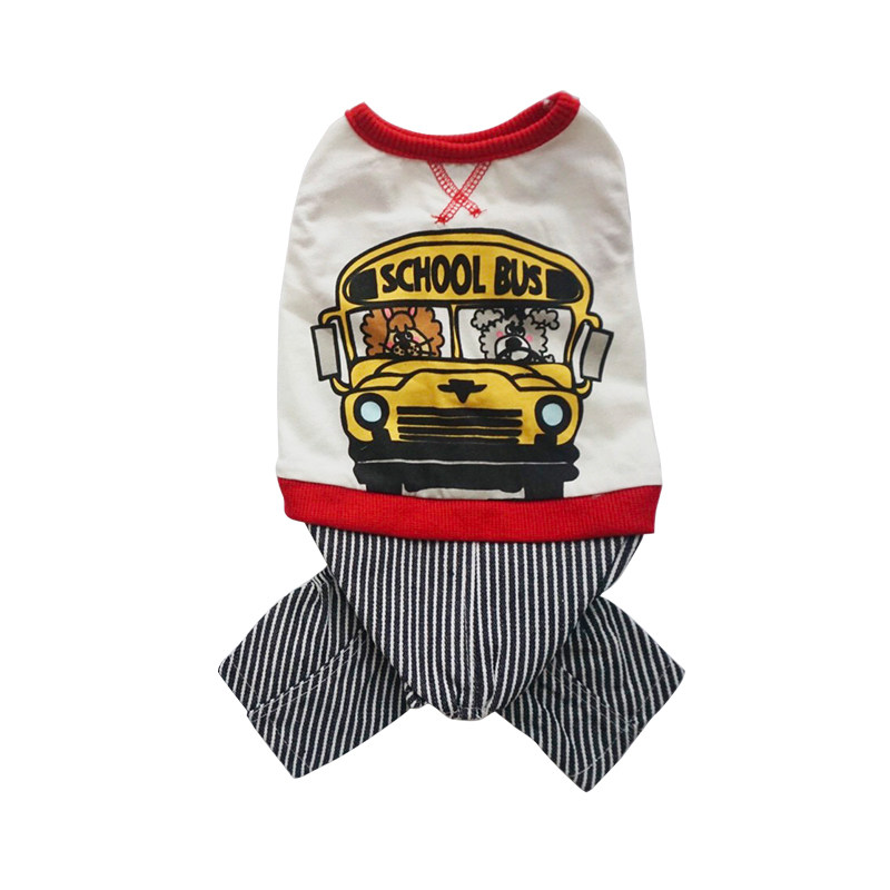 Cotton school bus pattern thin four-legged clothes dog sweater thin T-shirt Schnauzer bichon clothes pet vest summer