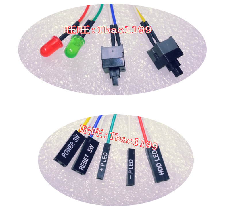 8 wire with indicator lamp computer switch line PC reset switch line PC switch machine desktop computer switch