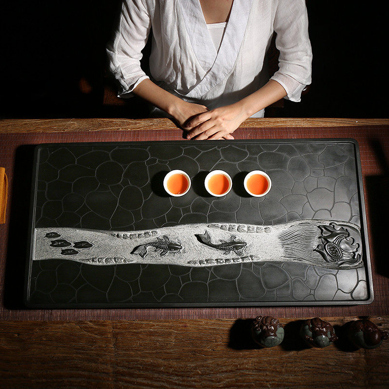 Whole Natural Urkin Stone Tea Tray Drain Relief Handmade Tea Sea Upscale Art Black Gold Stone Tea NTU