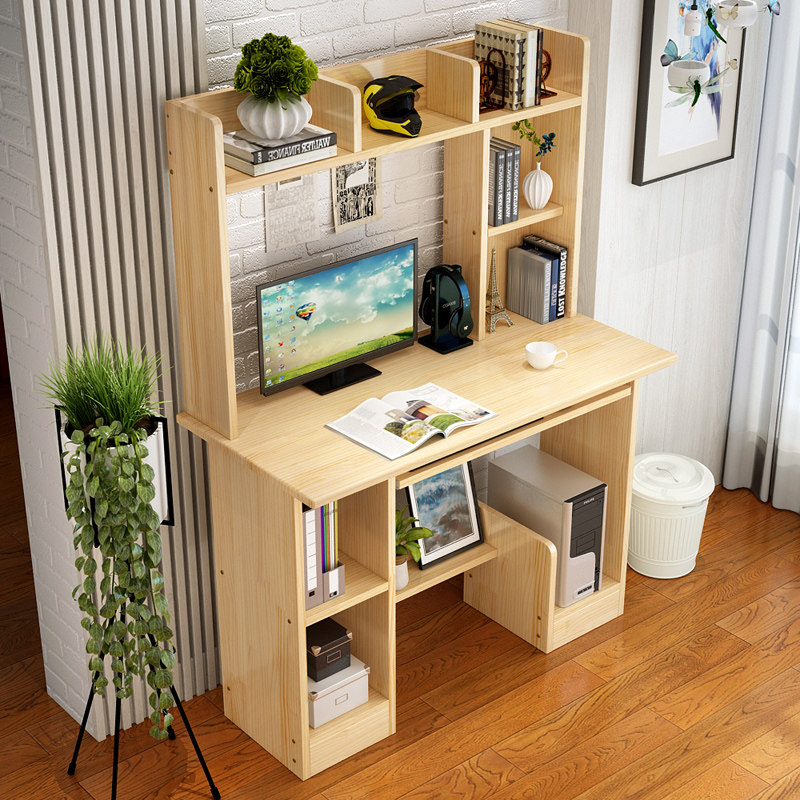 Computer desktop desk home solid wood student writing desk with bookshelf combination bookcase desk one simple