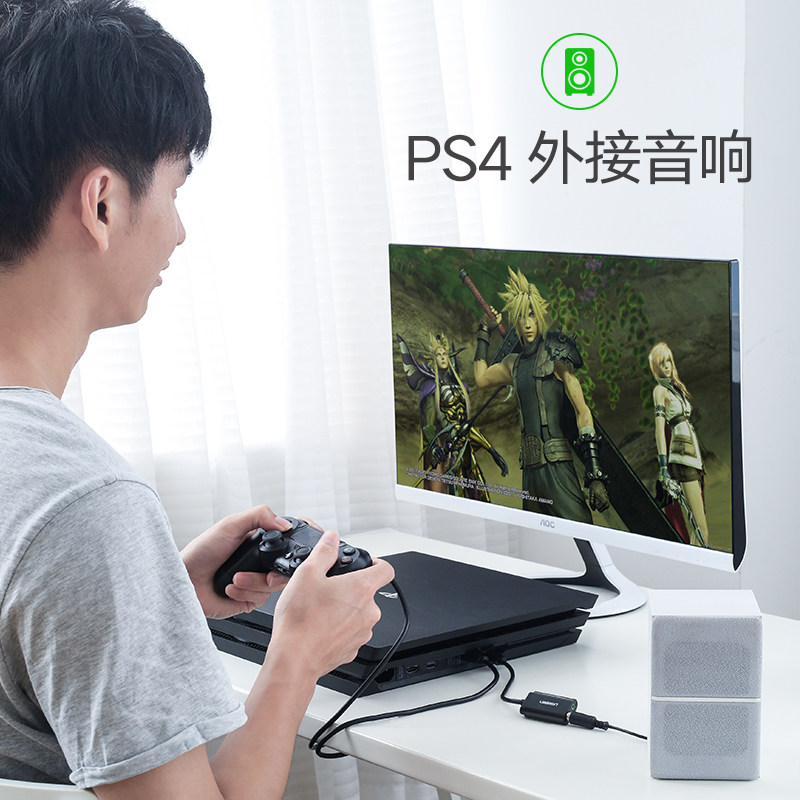 Green Lianz Usb External Link Type Sound Card Desktop Computer Laptop Interface Exclusive External Link Independent Audio Converter Wire Adapter PS4 Sound Headphone Microphone Game Live Free Drive Portable