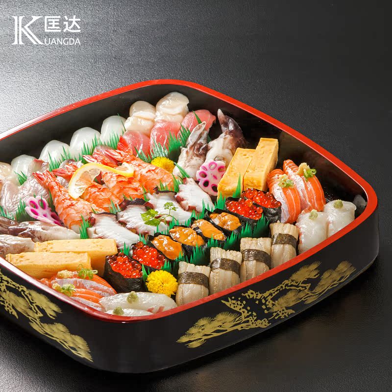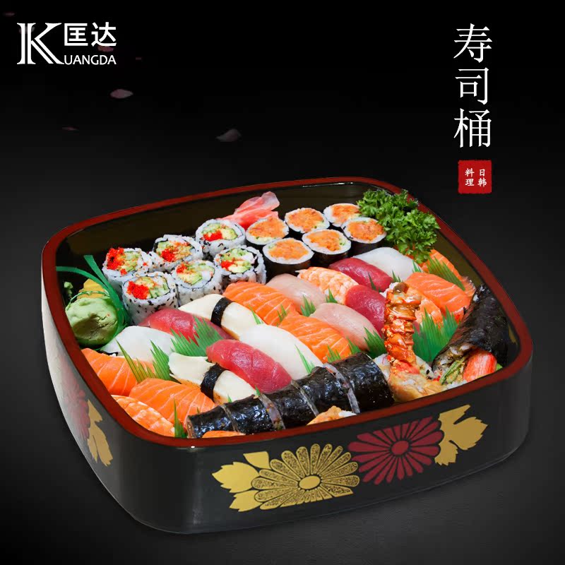 Square Sushi Barrels Day Style Ice Town Sashimi Dish Cuisine Box Refreshment Box Day Style Cutlery Pine Flowers Sushi Basin