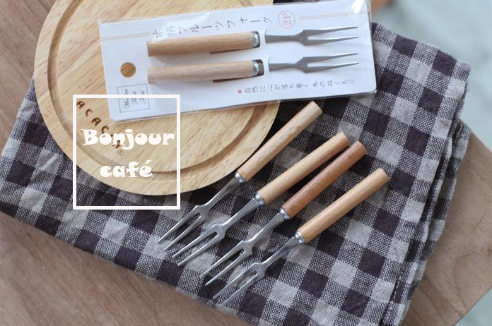 Spot Japan imported stainless steel fruit wooden handle fork dessert fork dessert fork afternoon tea cake fork dessert fork