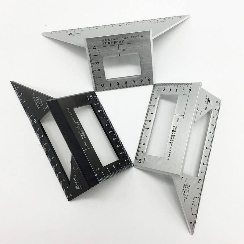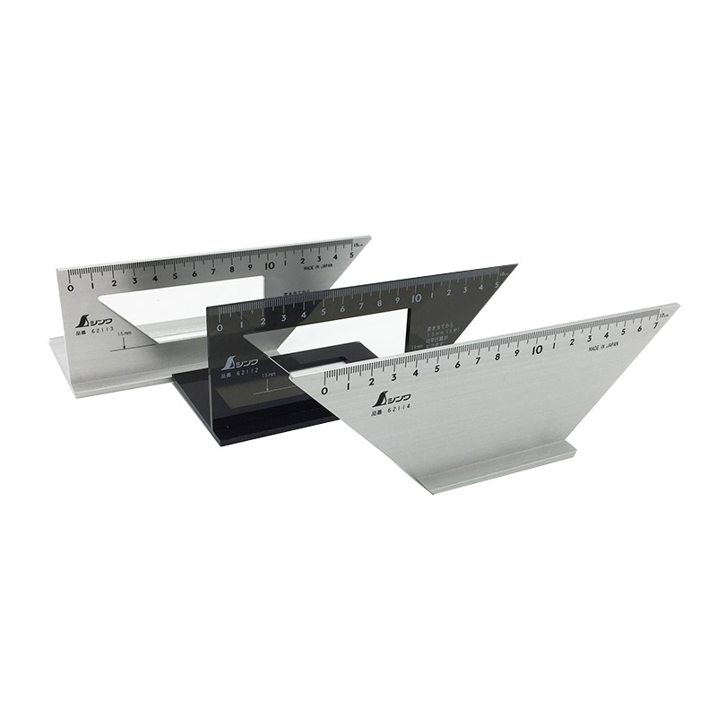 Aluminum 45 degrees 90 degrees (62113 made in Japan)Black polycarbonate (62112 made in Japan)Aluminum trapezoidal angle ruler (62114 made in Japan) Translucent polycarbonate(62