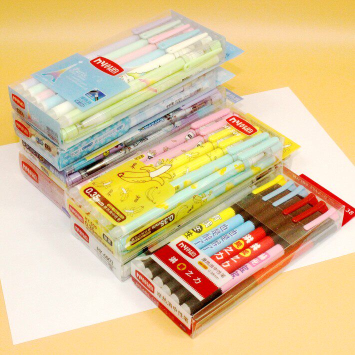 Han Yun Mo heat elimination ink pen student black and blue solid color candy cartoon full needle tube erasable gel pen Mo easy to wipe
