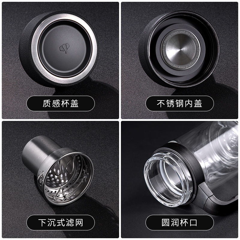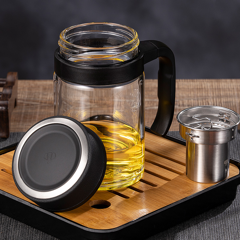 Vientiane glass cup men's water cup large capacity tea water separation office portable with handle tea cup