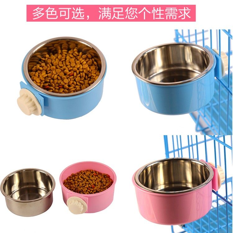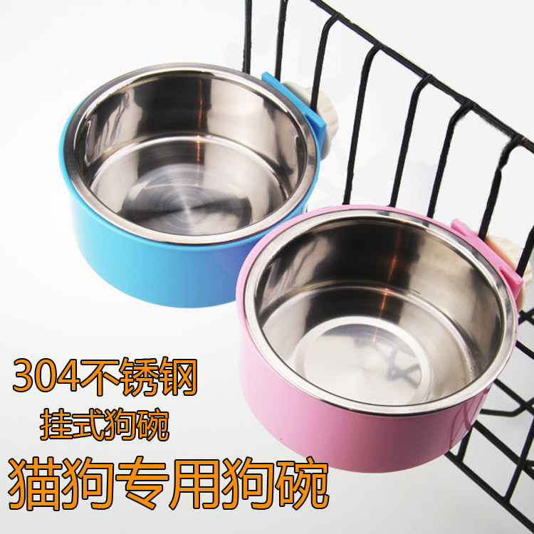 Pet stainless steel dog bowl dog bowl hanging cat bowl small and medium-sized dog anti-overturning dog plate water bowl cage fixed single bowl