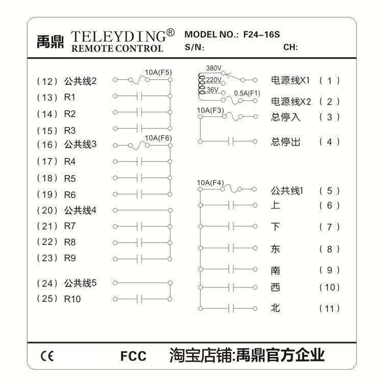 Single-fit F24-16S transmitter handle Set of 380V (1 Fat 1 collection) Set of 220V (1 Fat 1 collection) Set of 36V (1 Fat 1 collection) Set of 24V (1 Fat 1 collection)
