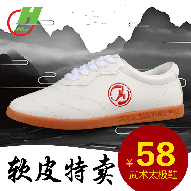 Red cotton Tai Chi shoes really soft cowhide superfiber tendon bottom women's summer martial arts training shoes practice shoes sports kung fu shoes
