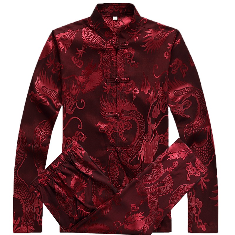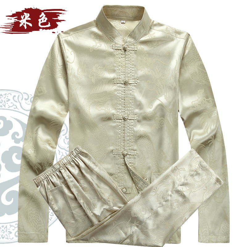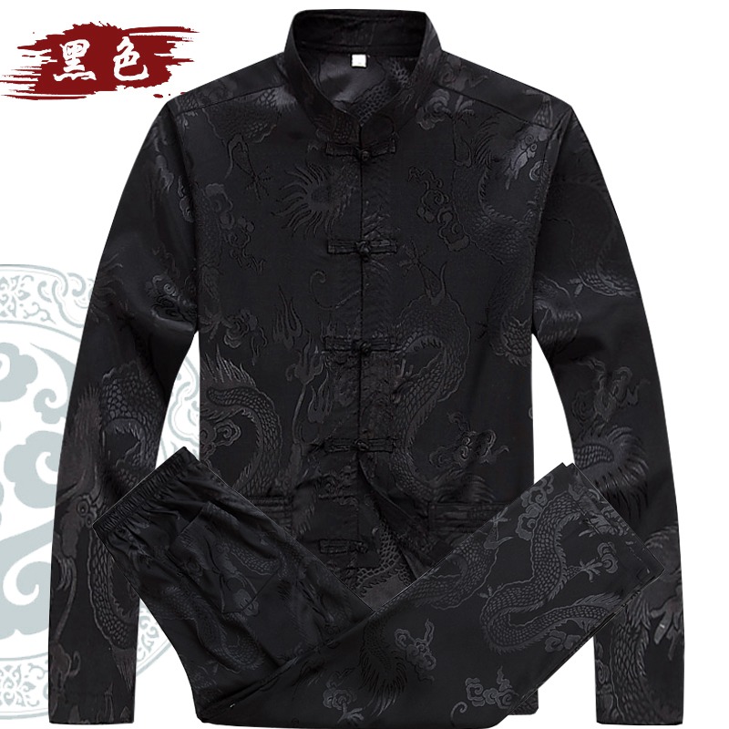 Spring, summer and autumn middle-aged and elderly Tang suit men's long-sleeved suit dad's ice silk large size shirt grandpa morning exercise Hanfu