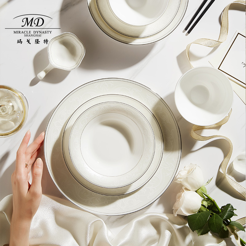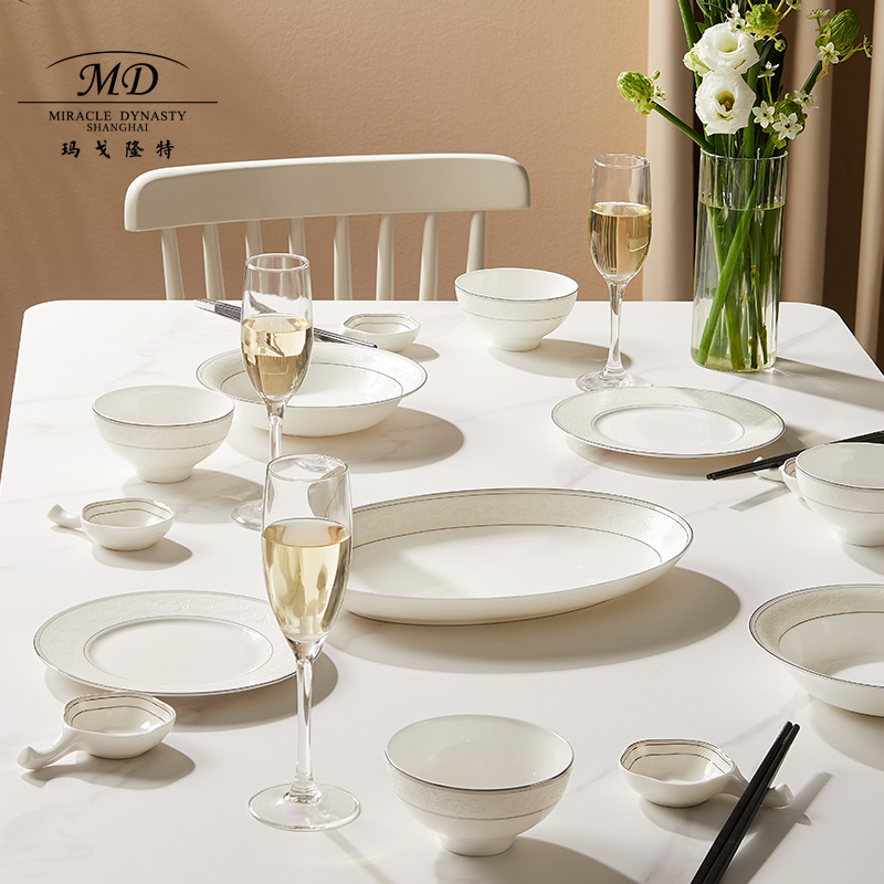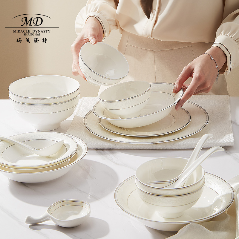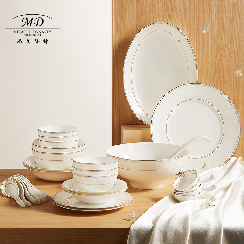 Margolonte White Lovers 32 32 Head 45% Bone Porcelain Tableware Suit 6 People Home Suit Bowls Dish Spoonful Gift Box