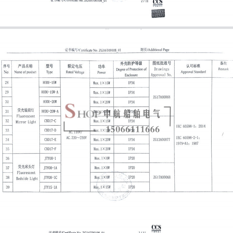 SeaStar LED marine fluorescent bed head lamp JTY15 -1A Single tube light ZYT15 -1A 1L compartment floodlight