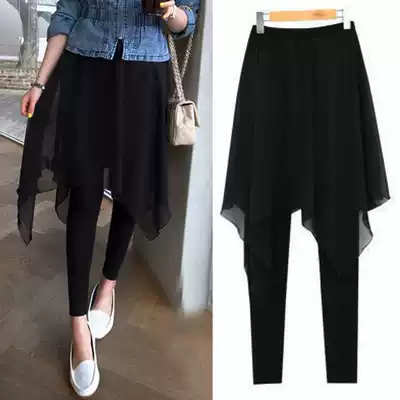 South Korea fake two-piece pants wear thin spring and summer large size chiffon skirt pants women irregular skirt women