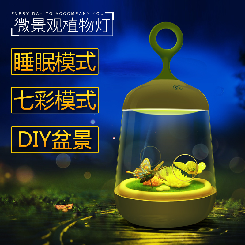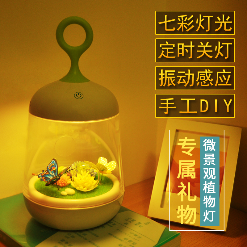 Micro Landscape Plant Light Handmade DIY Potted Small Night Light Touch Induction Seven Colorful Lights Charging Small Night Light