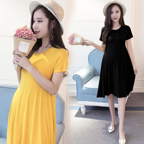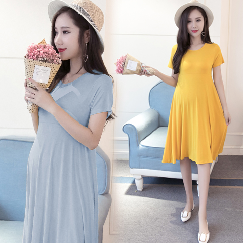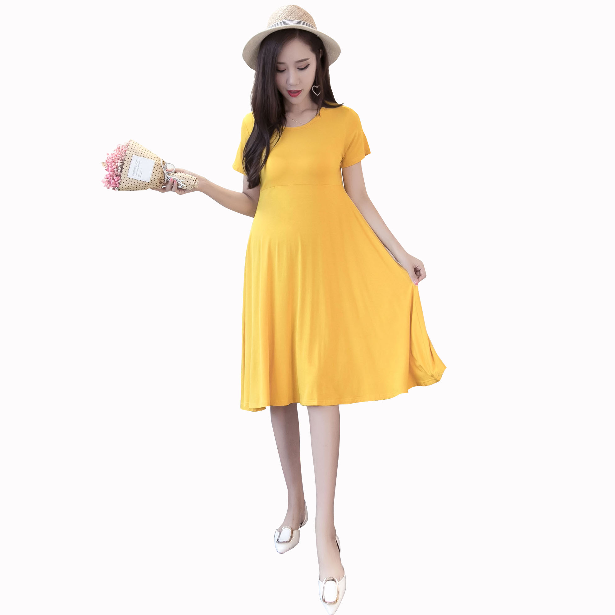 Pregnant Woman Foreign Dress Loose in large size Pregnancy Maternity dress Long version Short sleeves Modale pregnant woman Skirt Pregnancy late Long dress Summer thin