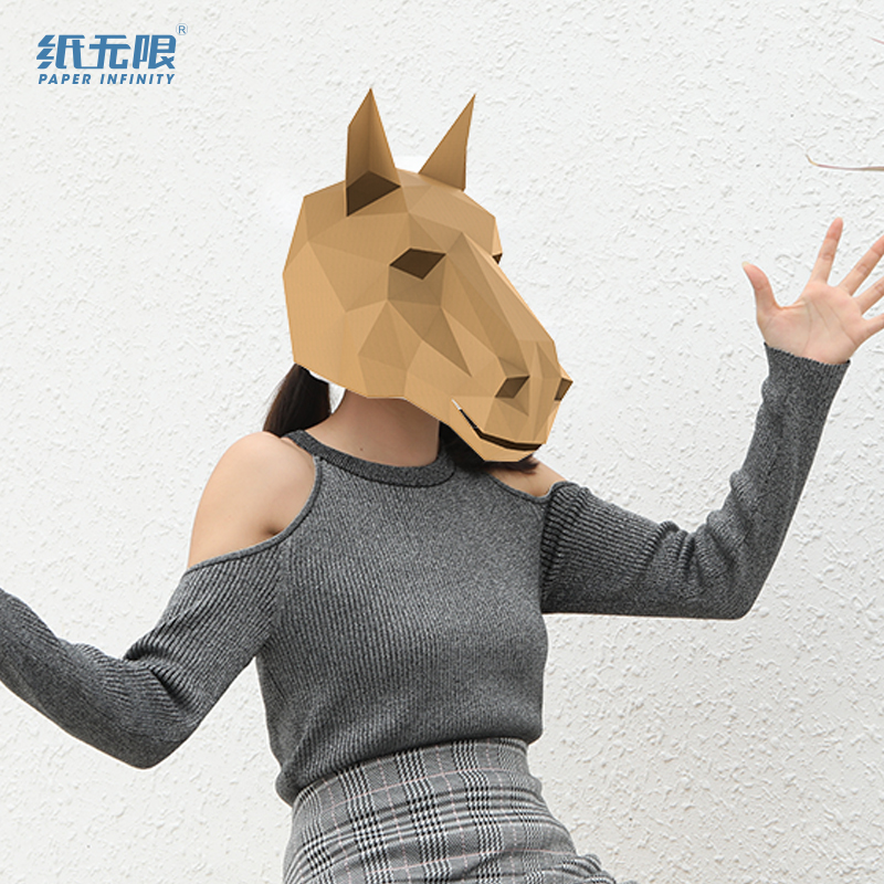 Horse Head Creative Paper Mask Headgear Handcrafted Origami Paper Die Material Bag Festival Makeup Prom Party Photography Props