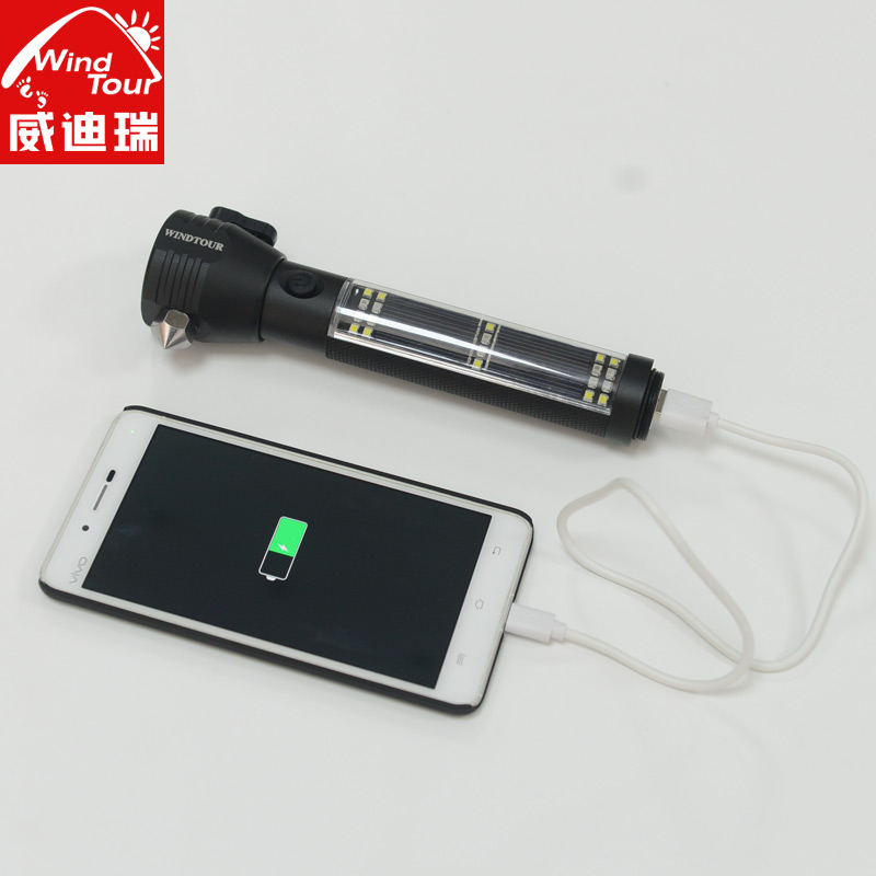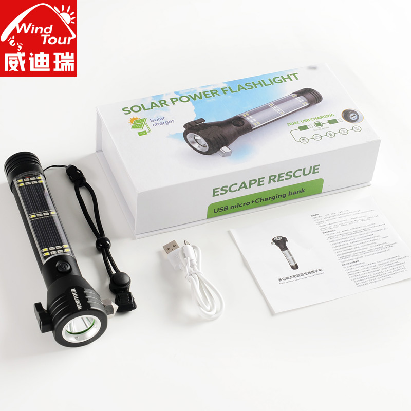 Outdoor Cycling Self Defense Strong Light Flashlight Variable Focus Long Range Home Flashlight Multi-purpose Solar Rechargeable Flashlight