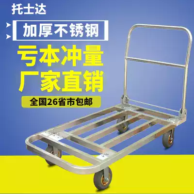 Tosda stainless steel square tube trolley Folding silent flatbed trolley Pull truck trolley Trolley cart cart