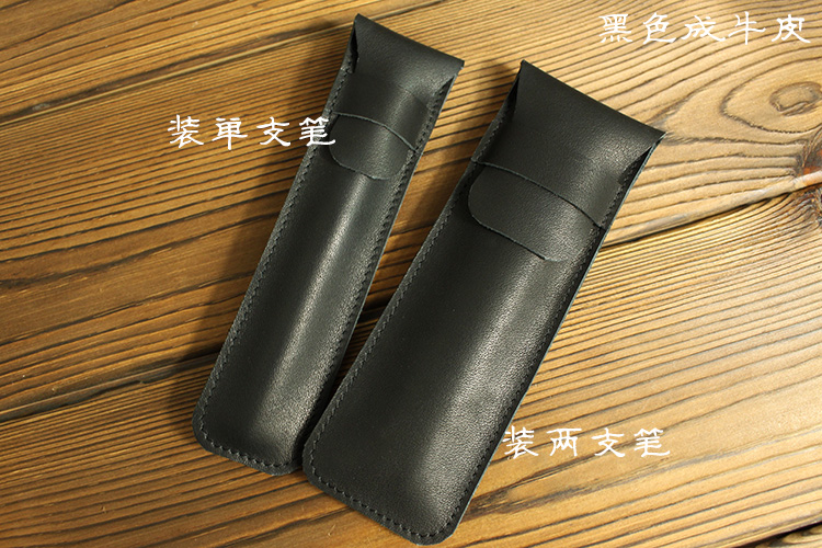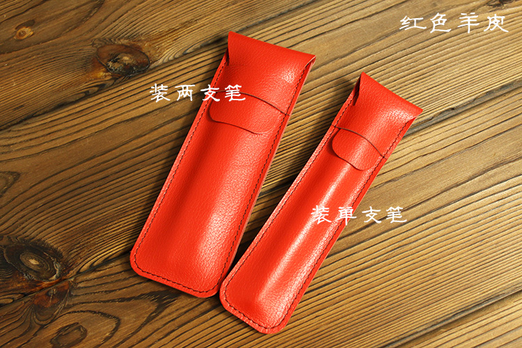 Crimson calfskin - two pens in green leather - one pen in black leather - one pen in green leather - two pens in colored lambskin - two pens in bright cyan leather - single