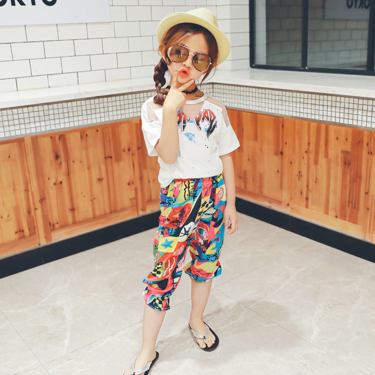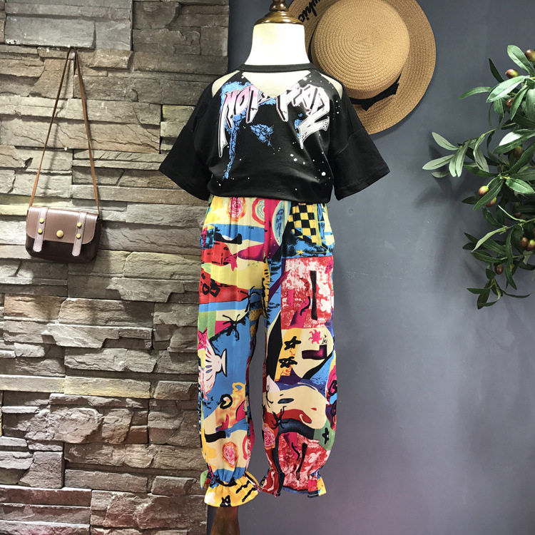 Girls' printed harem pants new children's clothing children's clothing pants children's summer all-match anti-mosquito pants small children's clothing pants YB7799