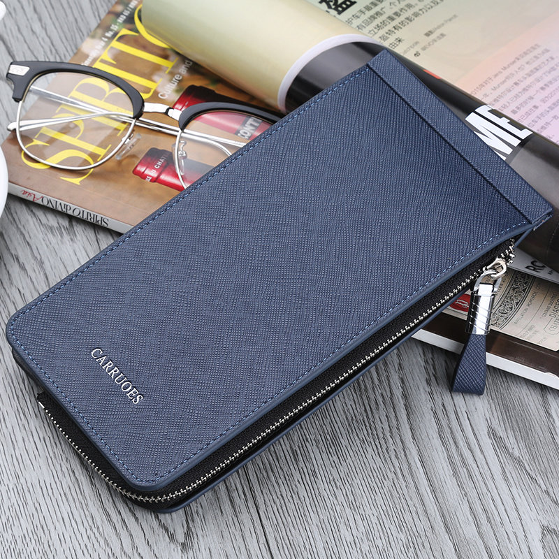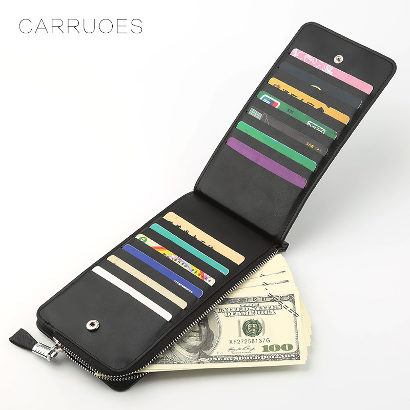 Ultra-thin men's card bag Multi-card card bag Long card clip card sleeve zipper multi-function business card bag anti-degaussing theft brush
