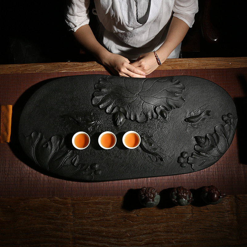 Natural whole block relief Urginstone tea tray big number stone tea table black gold stone tea sea allegory years more than