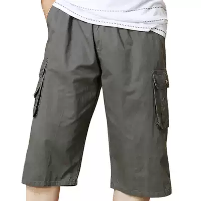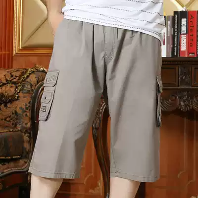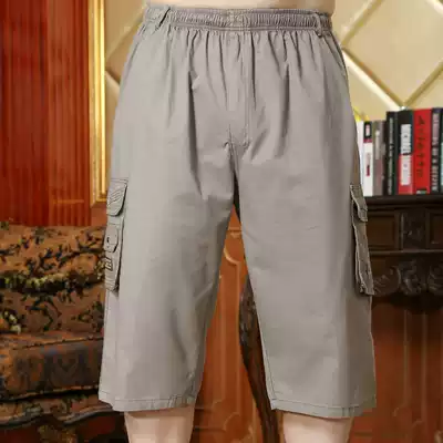 Middle-aged and elderly shorts men's loose high waist size dad casual pants Capri pants cotton summer thin plus fat breeches