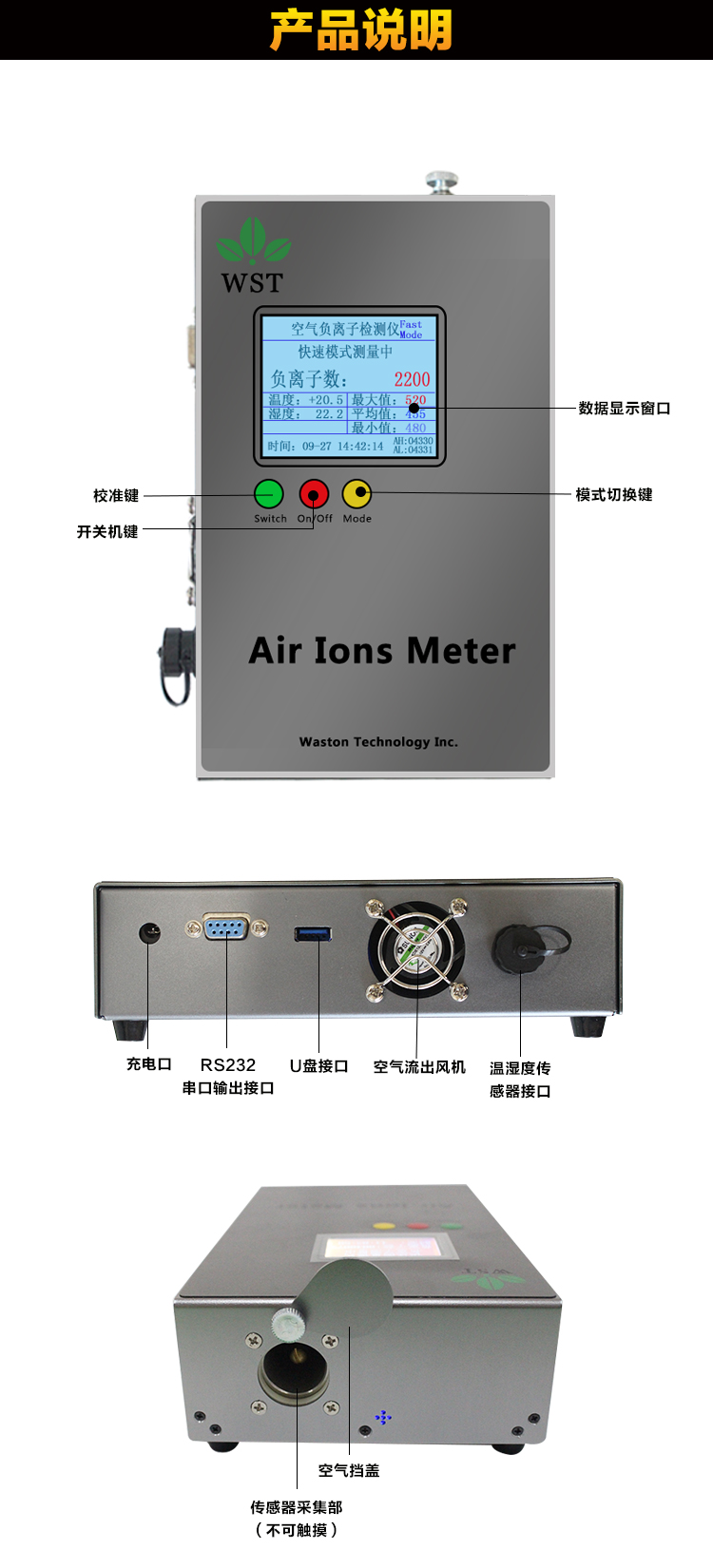 German core air negative oxygen ion detector WST-05 08 environment air negative ion detector portable