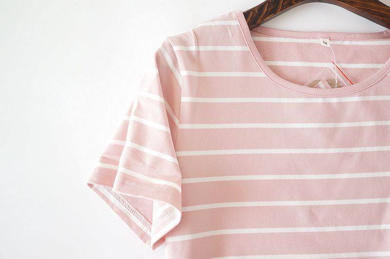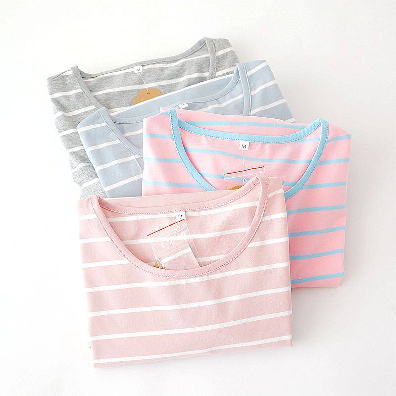 Day Ensemble Pure Cotton Lady Sleeping Skirt Short Sleeves Striped Casual Loose Half Sleeve home Full Cotton Large Size Pyjamas in Long version