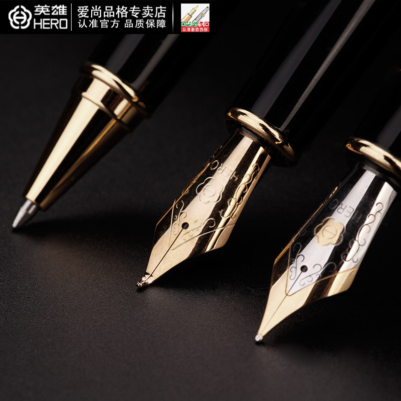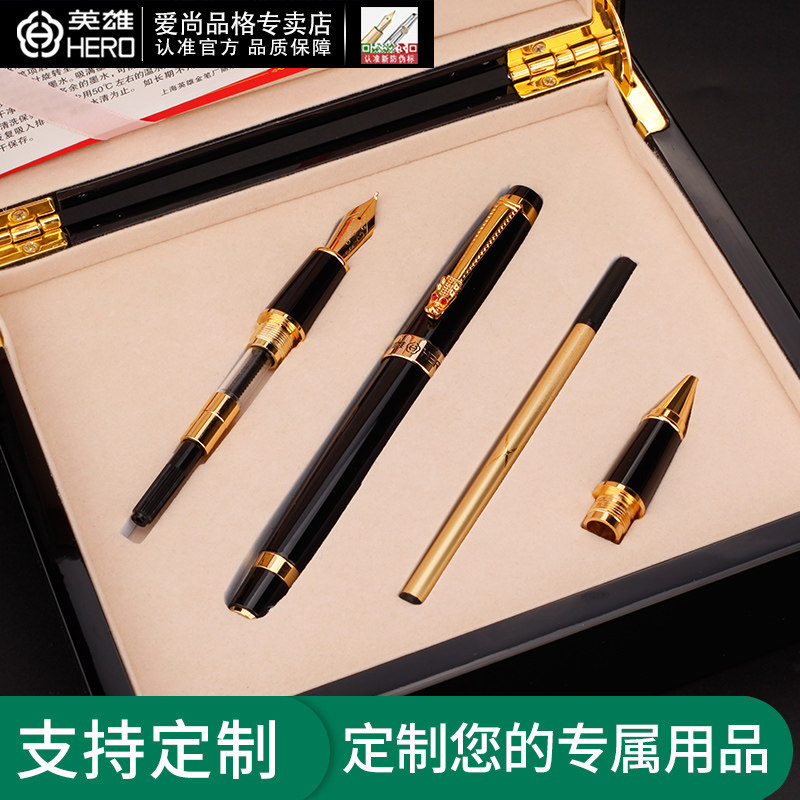 Official Hero Pen 1111 Dragon Clamp Adult Three Pen Writing Printed Ink Pen Business Office Gift Iridium Pen Curved Tip Signature Pen Neutral Pen Gift Box lettering customization