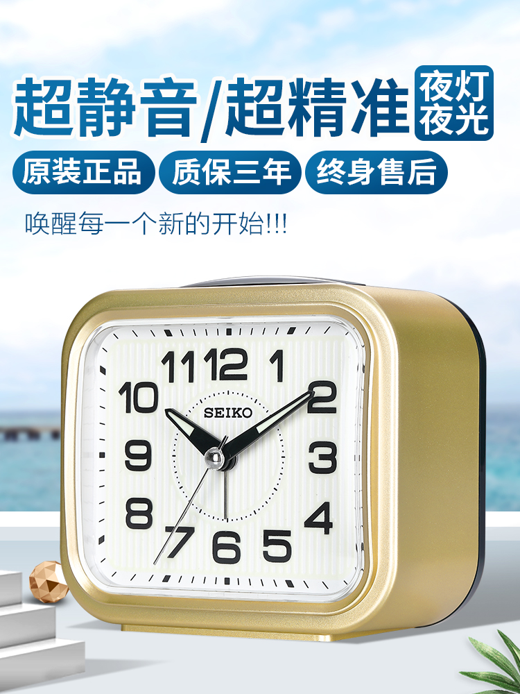 Japan Seiko clock bedroom bedside creative fashion snooze night light luminous mute student small alarm clock QHE130