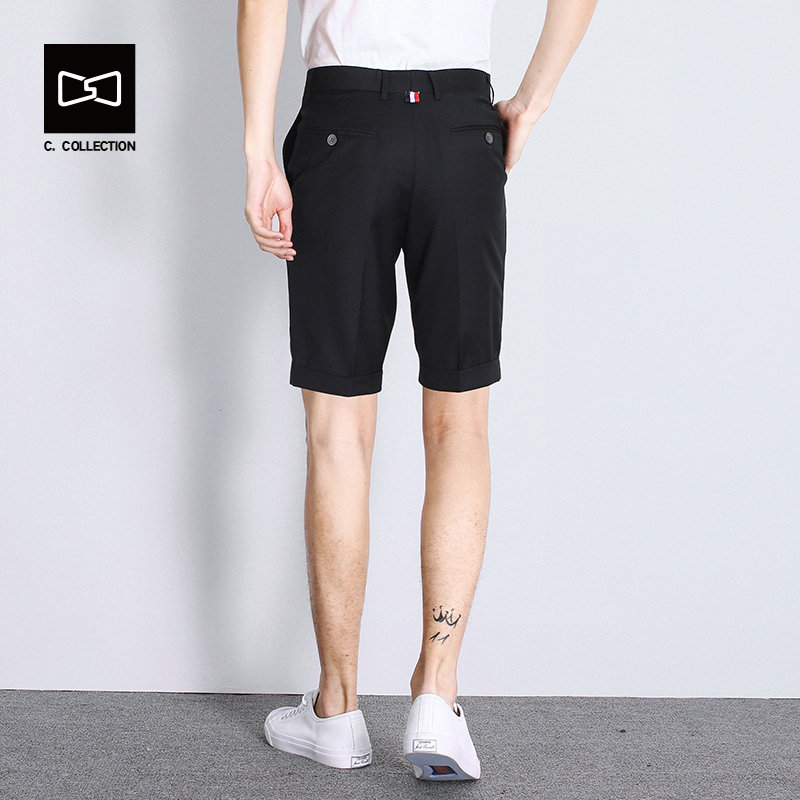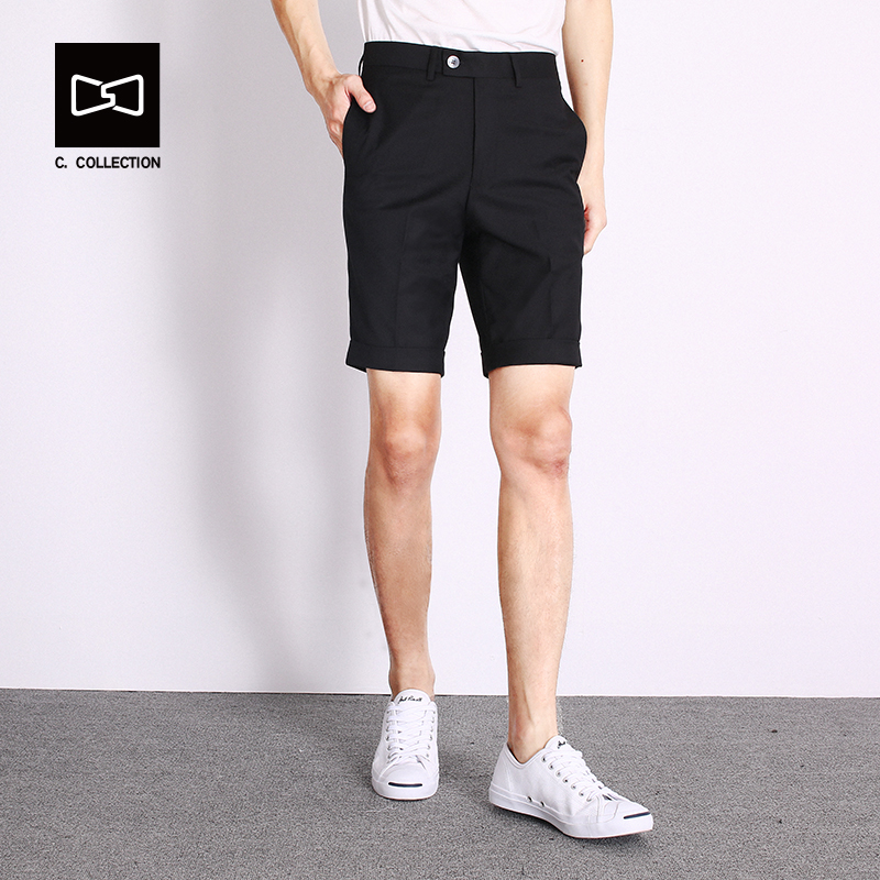 (limited-time clear cabin) GD Same-style Summer Casual Pants Men short Western Pants Fit Korean version Western pants Black Ironing Free Curl