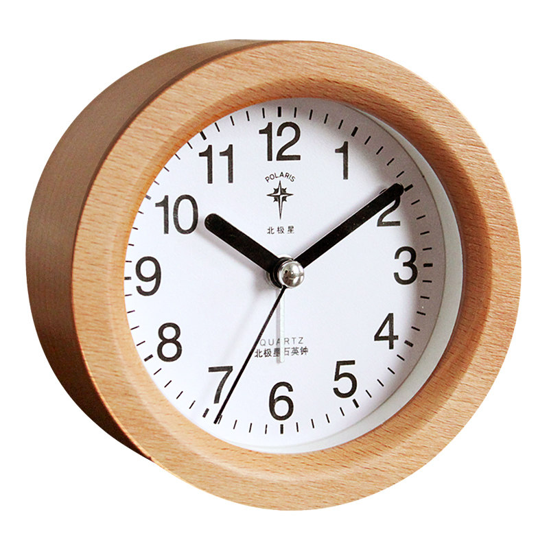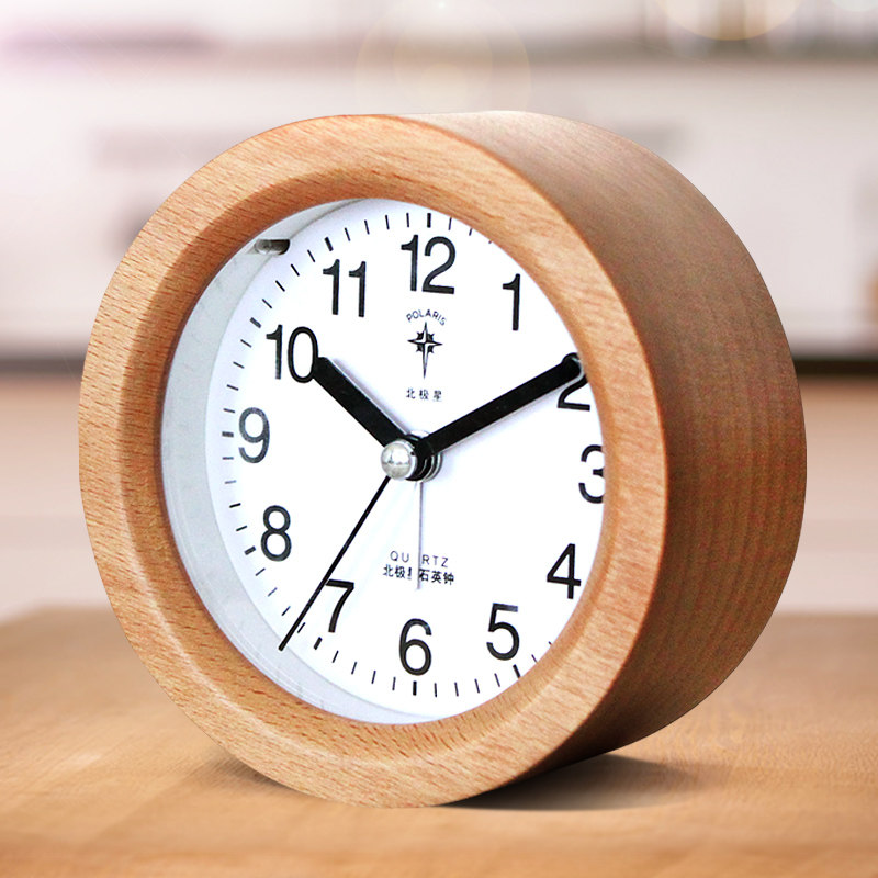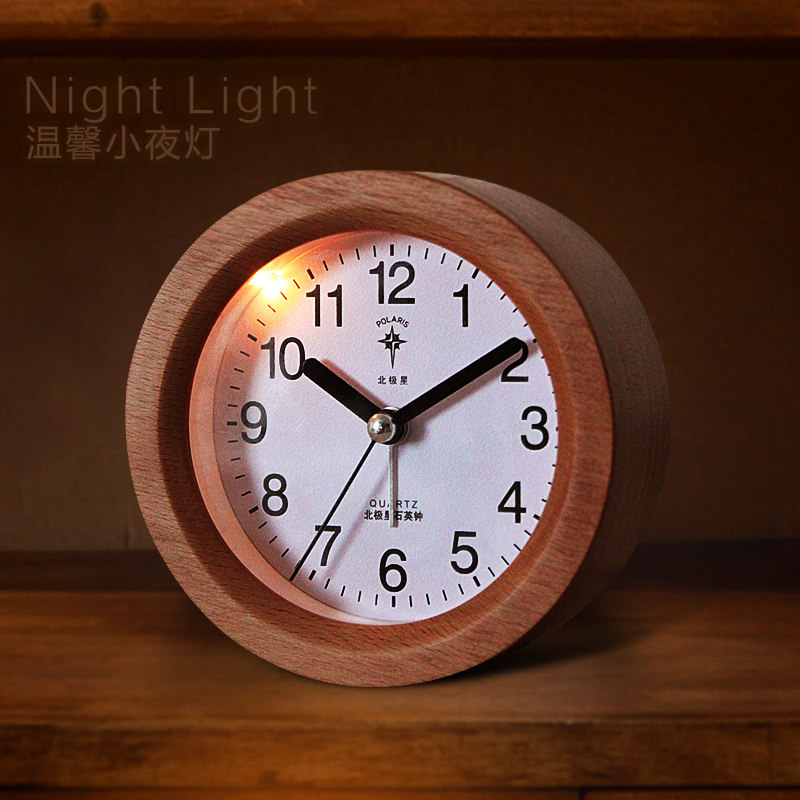 Solid wood alarm clock Student dormitory Creative night light Bed head Personality lazy mute Children's bedroom Polaris electronic clock