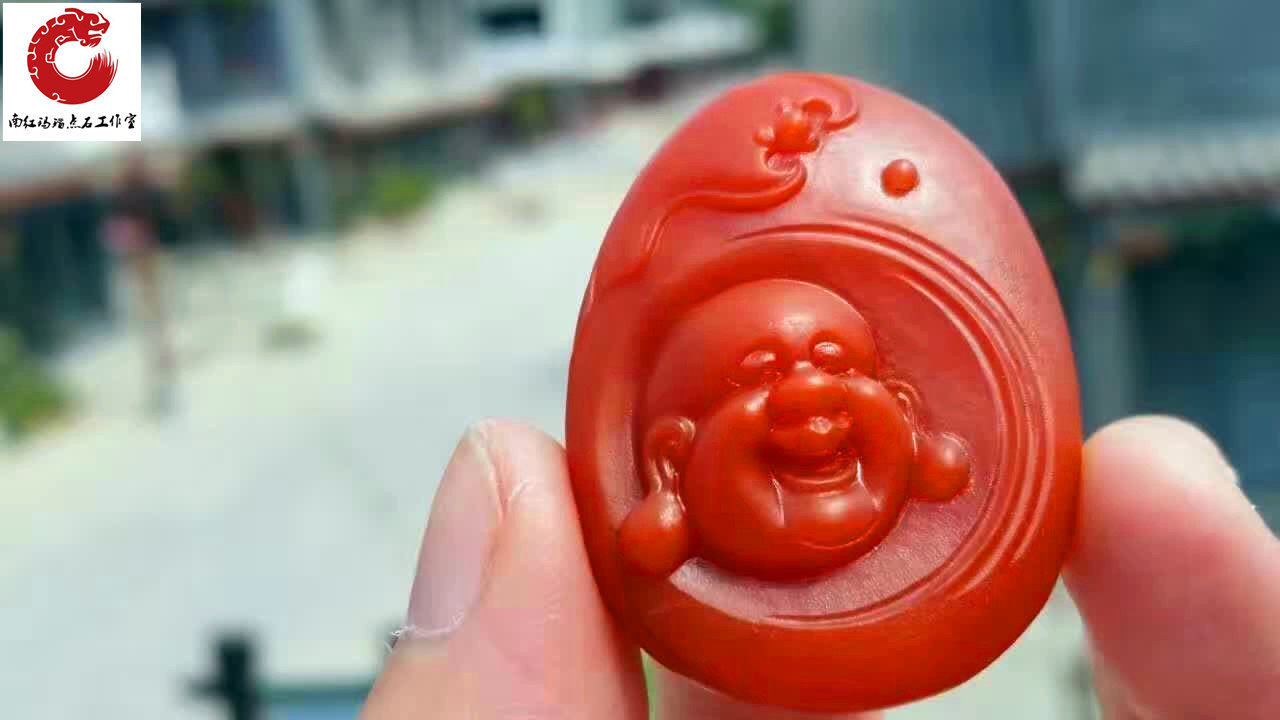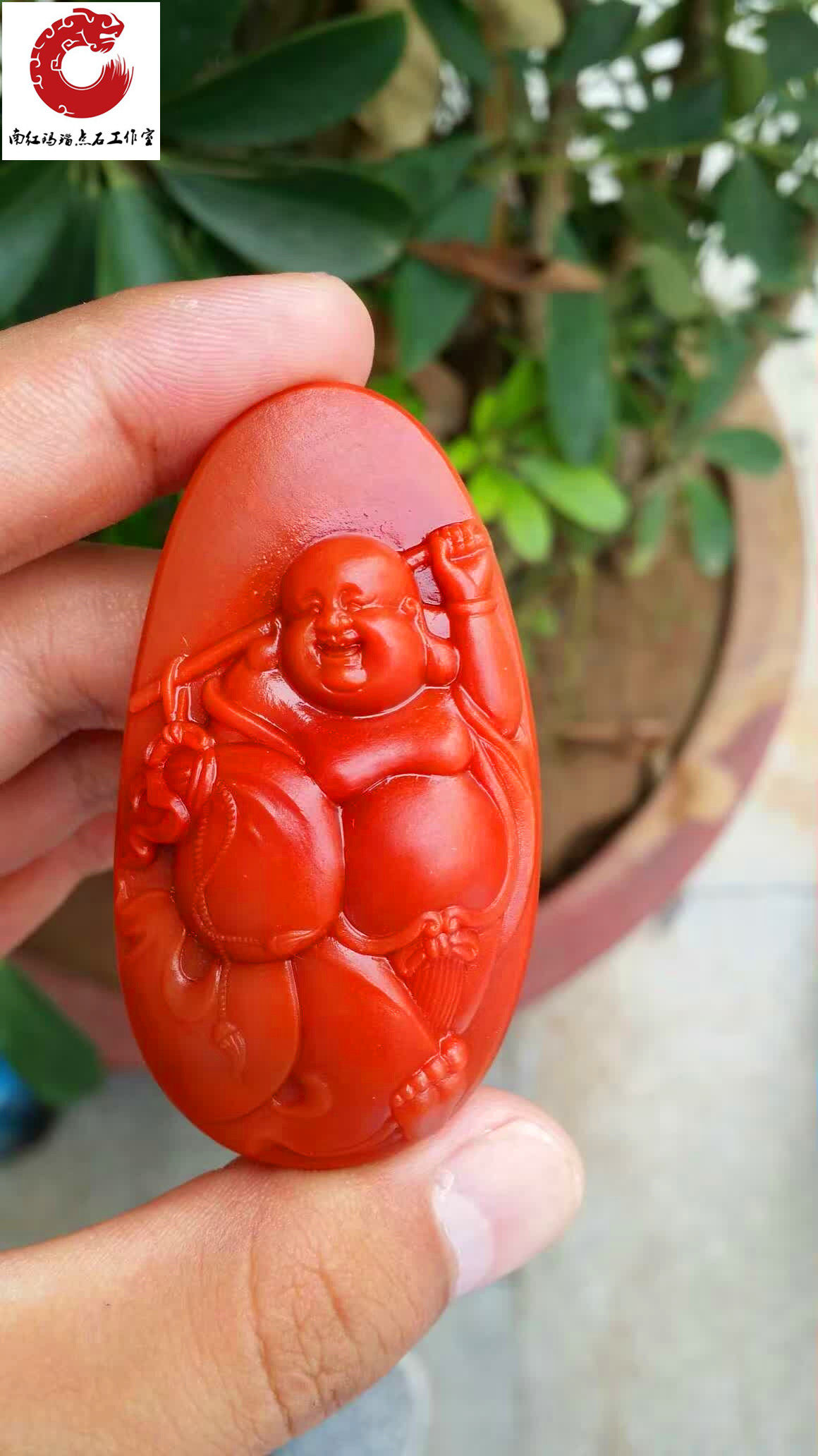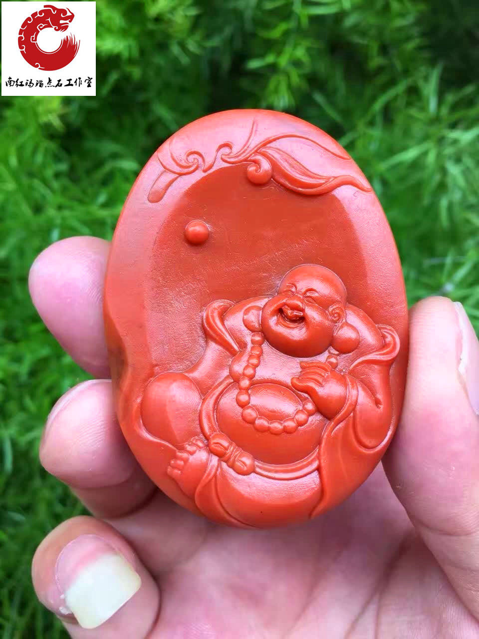 Sichuan Liangshannan red agate persimmon red cherry red Maitreya Buddha pendant Laughing mouth often open pendant Laughing Buddha bag Buddha