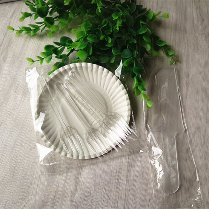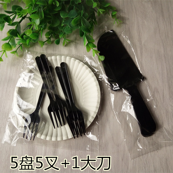 Disposable Cake Paper Tray Knife Fork Set 5 Disc 5 Fork Birthday Threaded Disc Four Teeth Fork Cutlery Bag 100 sleeves-Taobao