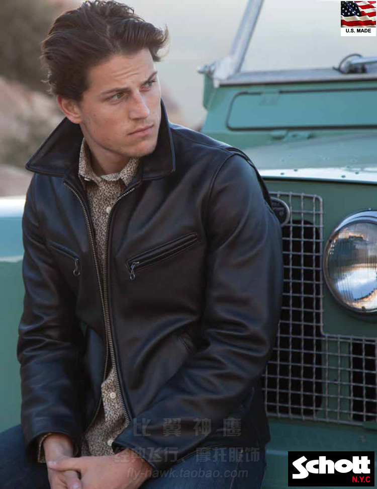 Schott NYC USA's new soft naked cowhide James lapel slim casual motorcycle leather jacket#165