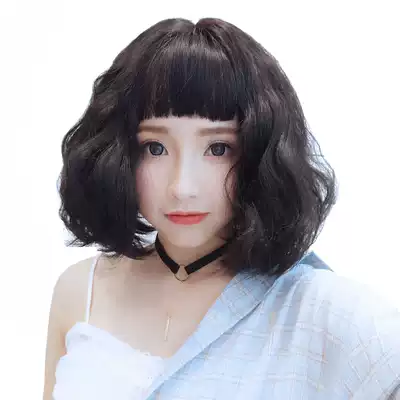 Wig female short hair eyebrows on Bangs roll hair repair face fluffy short curly hair long curly hair sweet cute bobo head