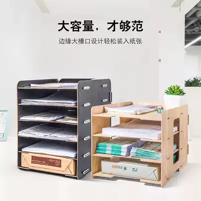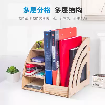 Office wooden desktop storage box Drawer book stand Multi-layer data file rack Display booster rack