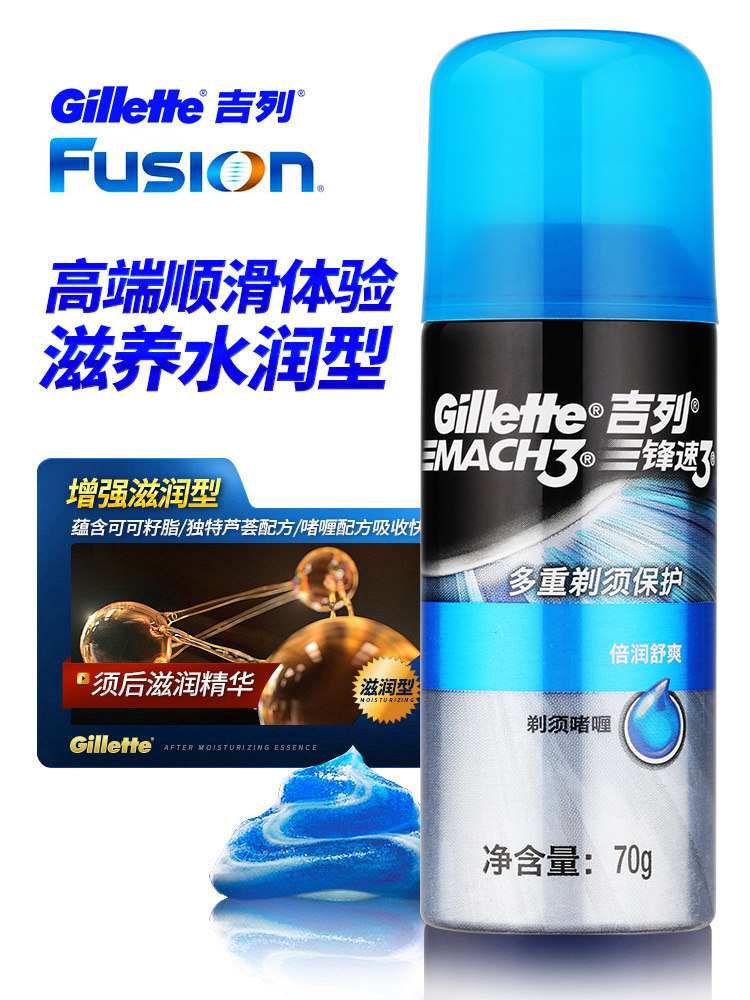 Gillette Men's Shaving Foam Gel Gilly Fengsu 3 Care Shaving Gel High-end Shaving Cream 70g*2 bottles