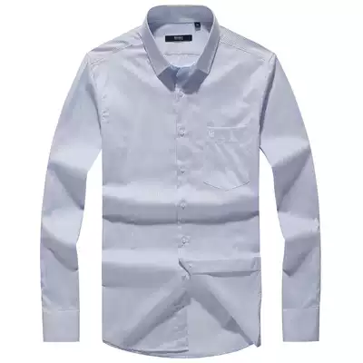 Romon Romon shirt Men's long-sleeved blue striped business casual cotton free ironing shirt Youth slim shirt
