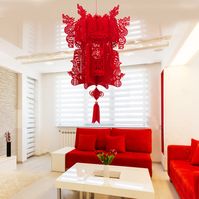 Wedding happy word lantern red wedding wedding room decoration wedding room layout Chinese living room bedroom corridor ceiling