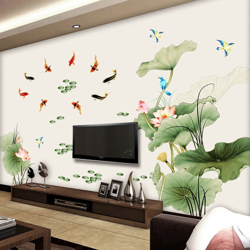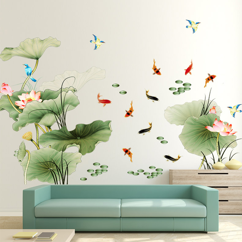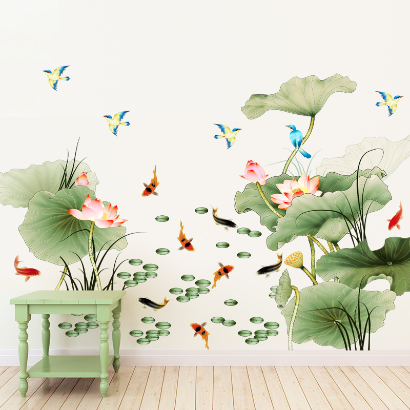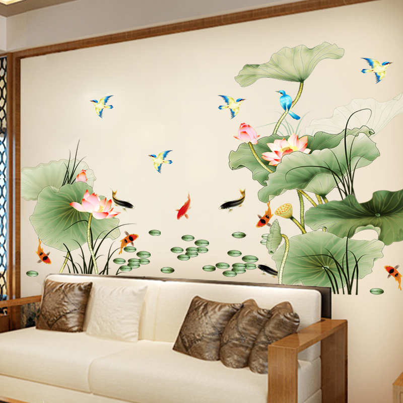 Lotus wallpaper self-sticky wall pattern living room bedrooms bedside decorative wall decoration wall sticker