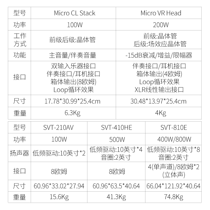 Micro CL Stack Kit Micro VR Head Box SVT-4PRO Box Head SVT-7PRO Box Head SVT-210AV Box SVT-410HE Box SVT-810E Box RB-108 Integrated Speaker 30WRB-110 Integrated Speaker 50W