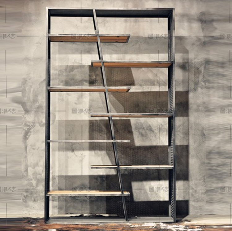 loft wrought iron solid wood personality creative metal shelf display cabinet retro old bookshelf floor partition bookcase