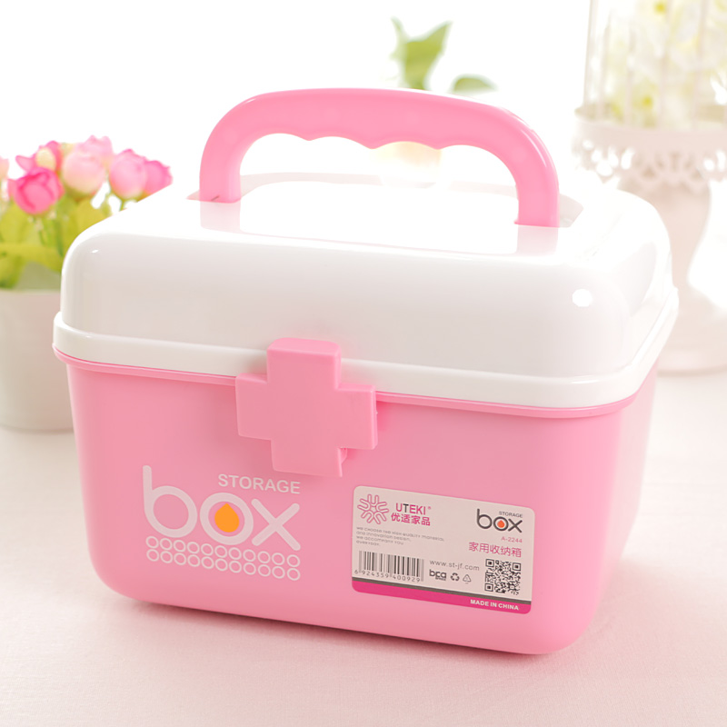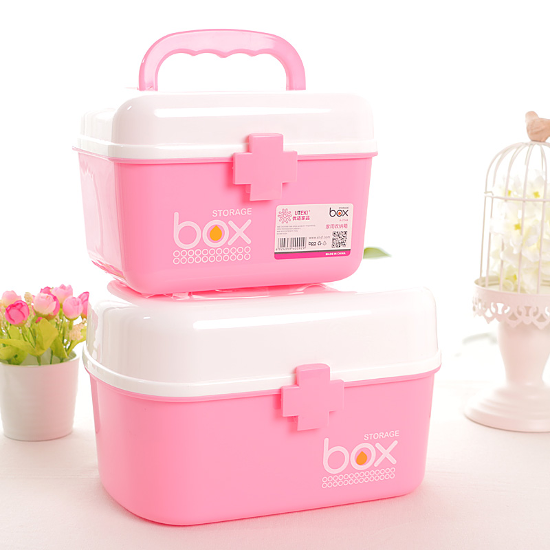 Medicine Box Home Pink Size Number Mini Hand Double Layer Medicine Box Medicine Medical Case Kid Toy Containing Box