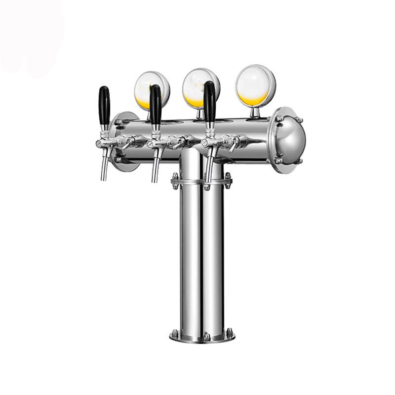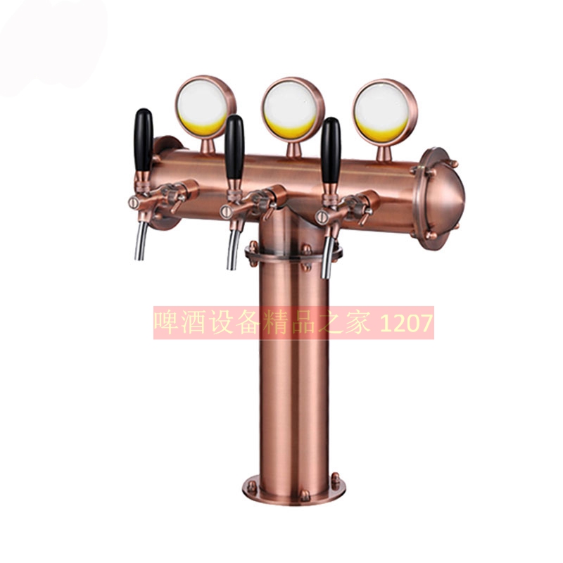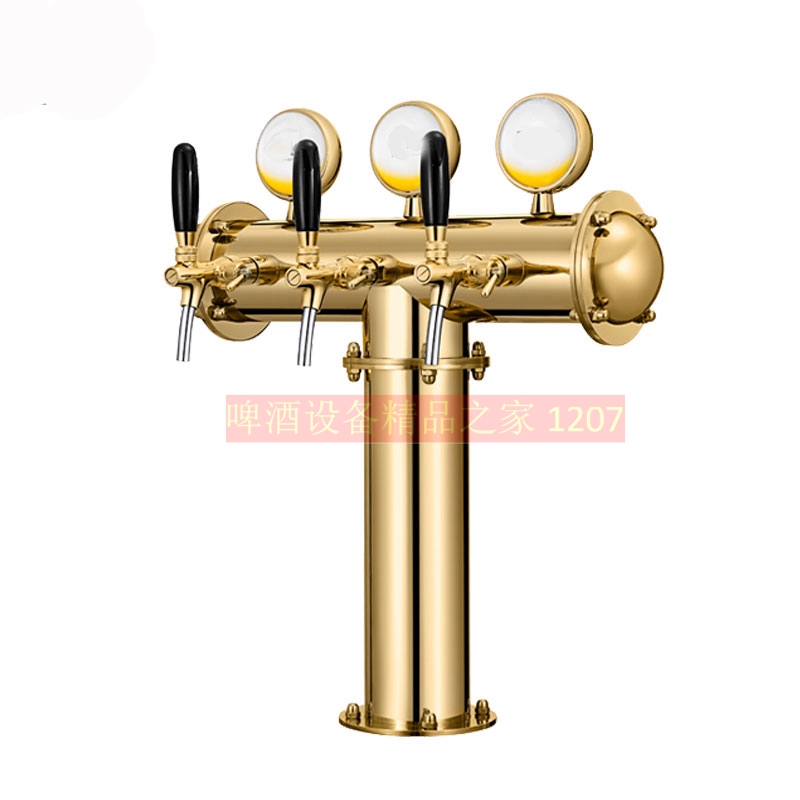 304 stainless steel gold silver color ancient bronze color T type three-head wine column with LED light fish eyepeter machine wine column