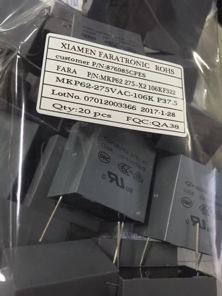 Xiamen Farra Regulation 106K 275V 10uF 275AC MKP62 106K275VAC P37 5MM