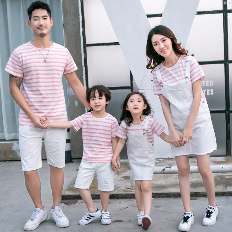 Family - child clothing 2023 new three - member three - member, four - sleeved strap mother and daughter strap dress all family gas suit