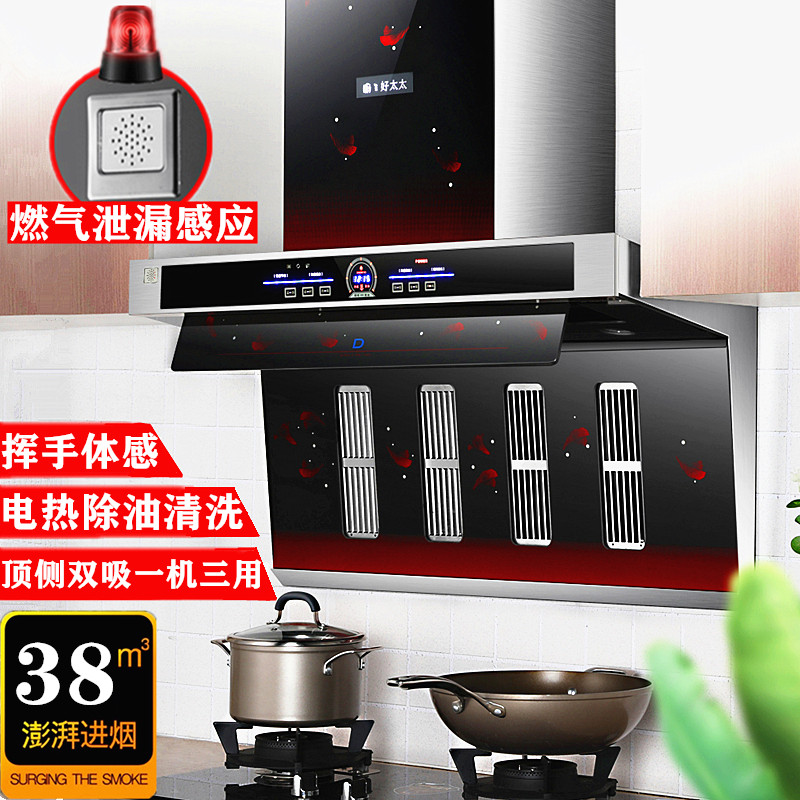 7-shaped good wife range hood Household kitchen oil suction machine Large suction top side double suction range hood smoking machine