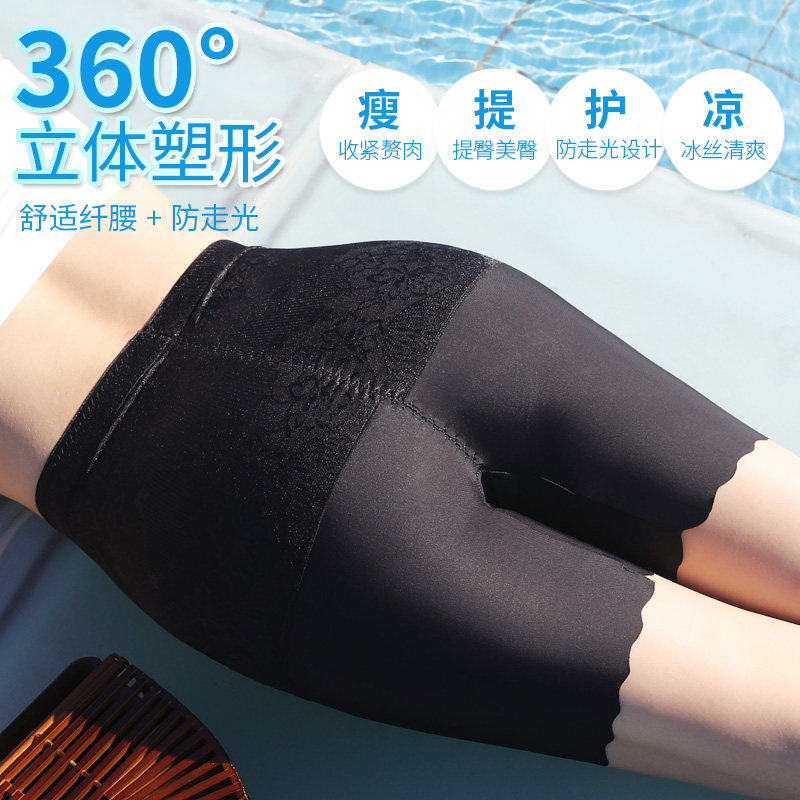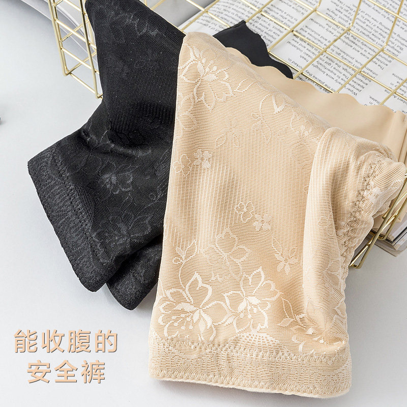 Corset pants safety pants women's anti-light non-rolled edge ice silk high waist belly summer insurance base four corners underwear